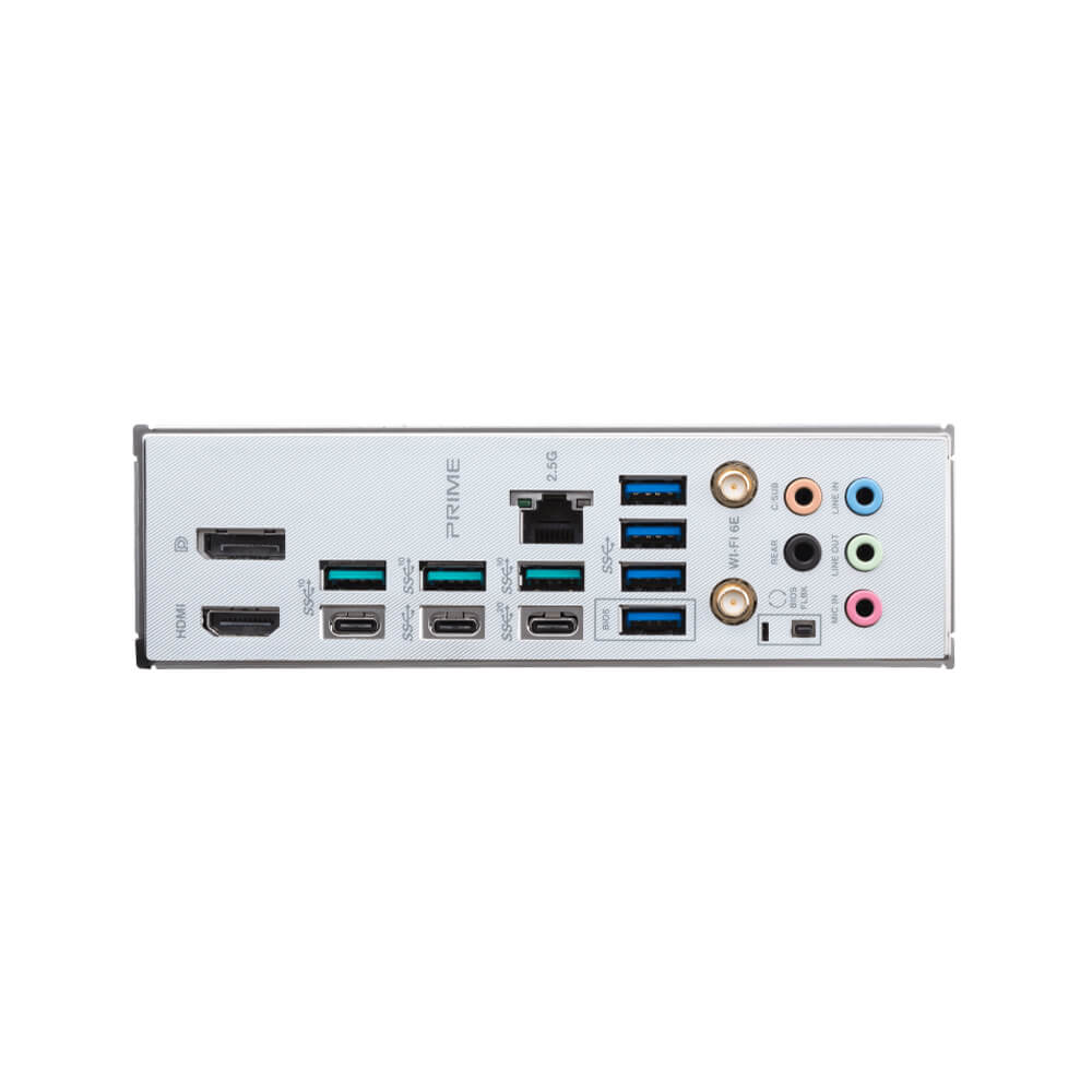 در پنل پشتی این محصول، پورتهای متعددی نظیر پورت شبکه 2.5 گیگابیتی با محافظت LANGuard، پنج پورت صدا، یک پورت USB-C 3.2 Gen 2×2، یک پورت USB-C 3.2 Gen 2، یک پورت USB-C 3.2 Gen 1، سه پورت USB-A 3.2 Gen 2، چهار پورت USB-A 3.2 Gen 1، پورت HDMI با پشتیبانی از رزولوشن 4K و فرکانس 60 هرتز و پورت Display با پشتیبانی از رزولوشن 8K و فرکانس 60 هرتز دیده میشوند. در کنار این پورتها، دکمه آپدیت بایوس و ماژول وای فای نیز وجود دارند. پنل پشت دارای محافظ ورودی و خروجی از جنس استیل ضدزنگ است تا از دوام بالایی برخوردار باشد.