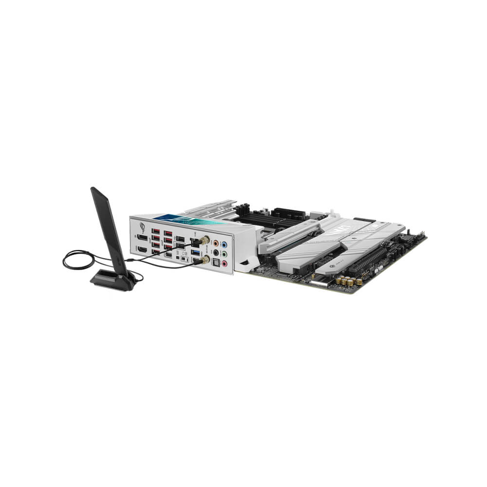 پورتهای پنل پشتی آن نیز، شامل یک پورت USB-C 3.2 Gen 2×2، هفت پورت USB 3.2 Gen 2، یک پورت USB-C 3.2 Gen 2، یک پورت USB 3.2 Gen 1، دو پورت USB 2.0، یک DisplayPort 1.4، یک پورت HDMI 2.1، دکمه Clear CMOS، دکمه بایوس، پورت خروجی Optical S/PDIF، پورت شبکه 2.5 گیگابیتی، ماژول وای فای با پشتیبانی از Wi-Fi 6E برای اتصال بی سیم پایدار و پر سرعت با کمترین لگ و در نهایت پنج پورت صدا با قابلیت پخش صدای 7.1 کاناله است.