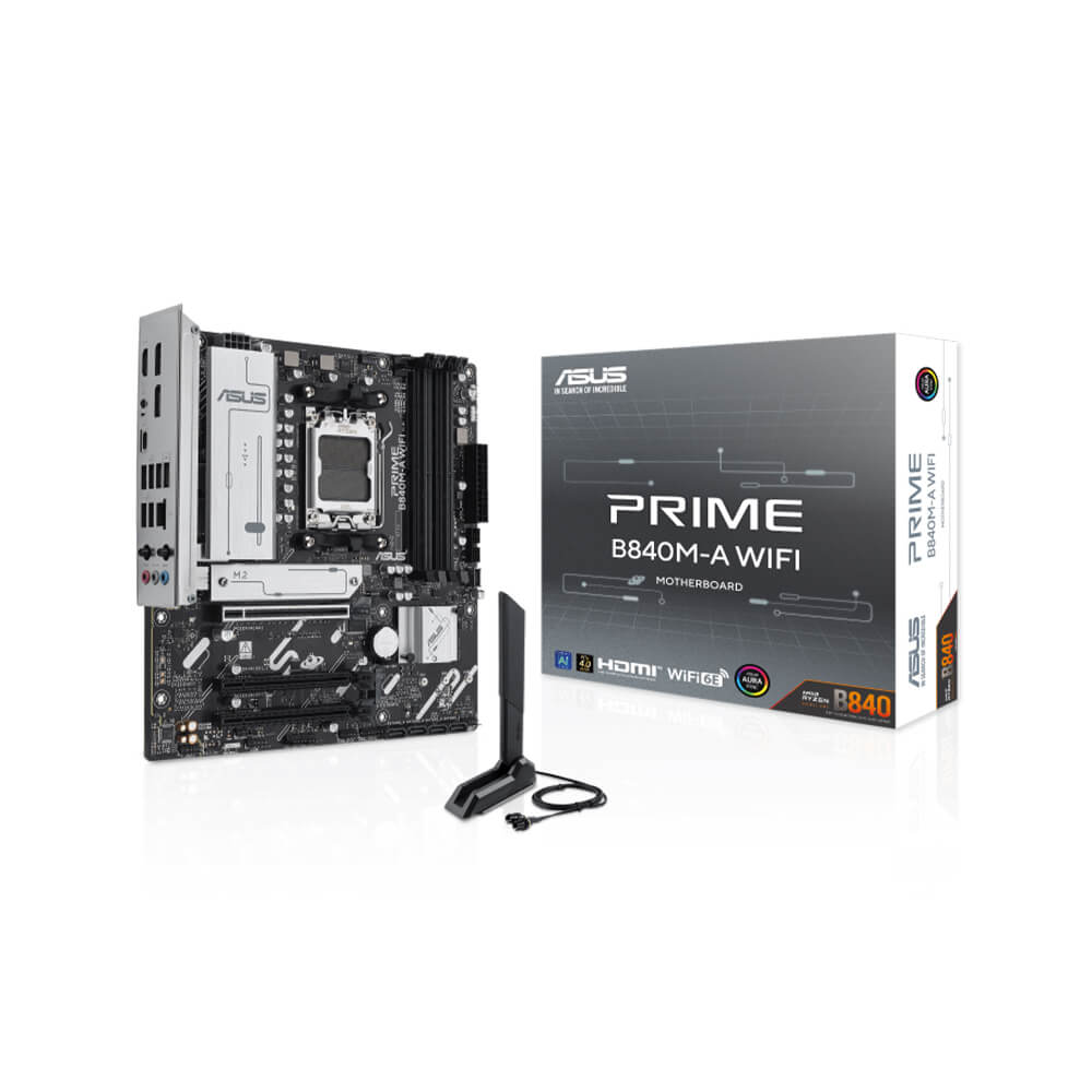 مادربرد ASUS Prime B840M-A WIFI یک انتخاب ایده‌آل برای کاربرانی است که به دنبال عملکرد مناسب و ویژگی‌های پیشرفته هستند. این مادربرد با پشتیبانی از پردازنده‌های سری 9000، 8000 و 7000، امکانات مناسبی را برای بهبود تجربه کاربری ارائه می‌دهد. این محصول با فرم فاکتور  Micro-ATX طراحی شده است. از سوکت پردازنده AM5 و چیپست AMD B840 بهره می‌برد. این ترکیب به کاربران امکان استفاده از پردازنده‌های سری AMD Ryzen را می‌دهد. مادربرد گیگابایت با استفاده از  Wi-Fi 6E (802.11 ax) و بلوتوث نسخه 5.3، ارتباطات بی‌سیم پرسرعت و پایدار را فراهم می‌کند.  این مادربرد فاقد نورپردازی است.